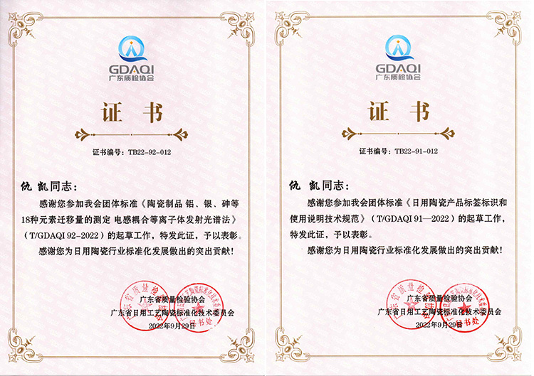 該團體標準由廣東省質量檢驗協會牽頭,來自全國相關行業的10余家企業機構協同配合,共同參與制定。此次陶瓷制品團體標準通過審定,為企業生產提供了方法指南,為市場監管和服務提供了技術依據,將有力助推企業產品高質量標準化發展。